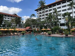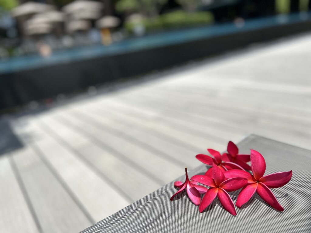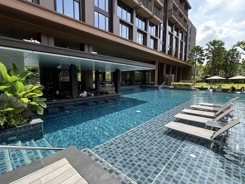 プールサイドで過ごす「何もしない時間」バンコク中心部のホテルのように混み合うこともなく、空港ホテルゆえに昼間が非常に静かで、プールサイドは特に静かな時間が流れていました。