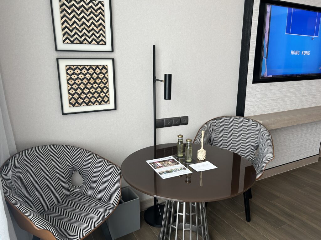 ベランダには2つのイスが用意され、飛行機を眺めたり、下には大きなプールとガーデンを見下ろせる良いお部屋でした。