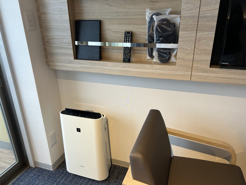 スリッパに空気清浄機、必要なものがコンパクトにまとまっていました。