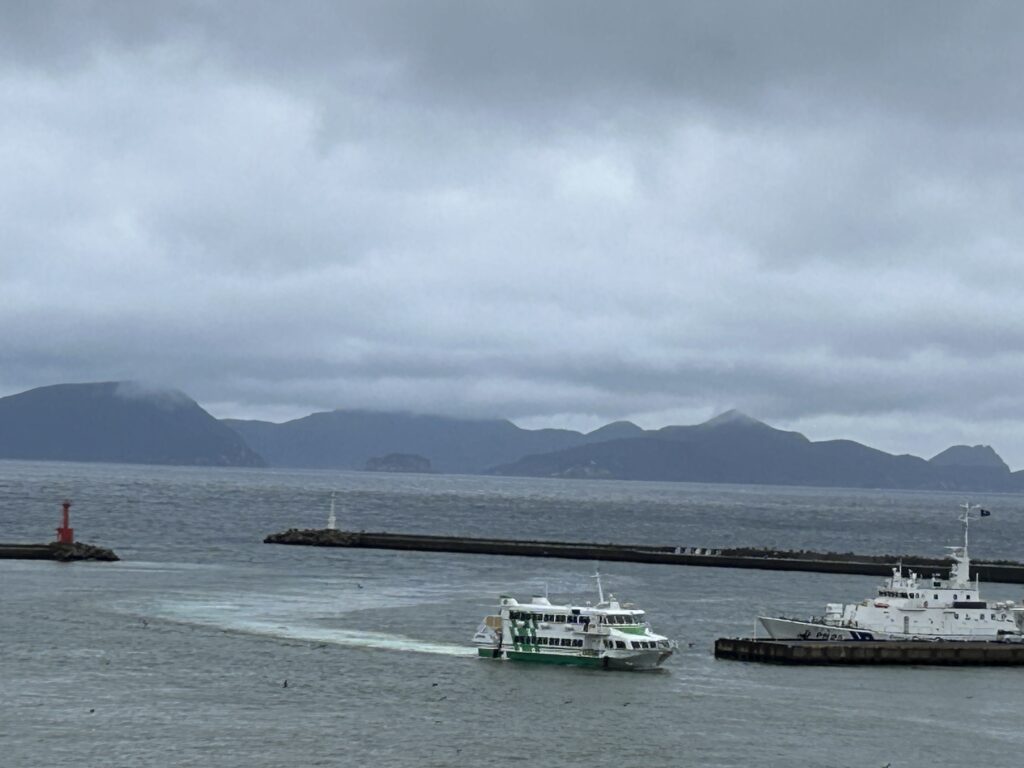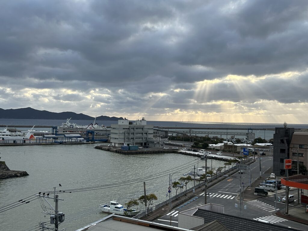 滞在中、長崎からの大型フェリーが港に滑り込んでくる瞬間を何度も部屋から眺めました。