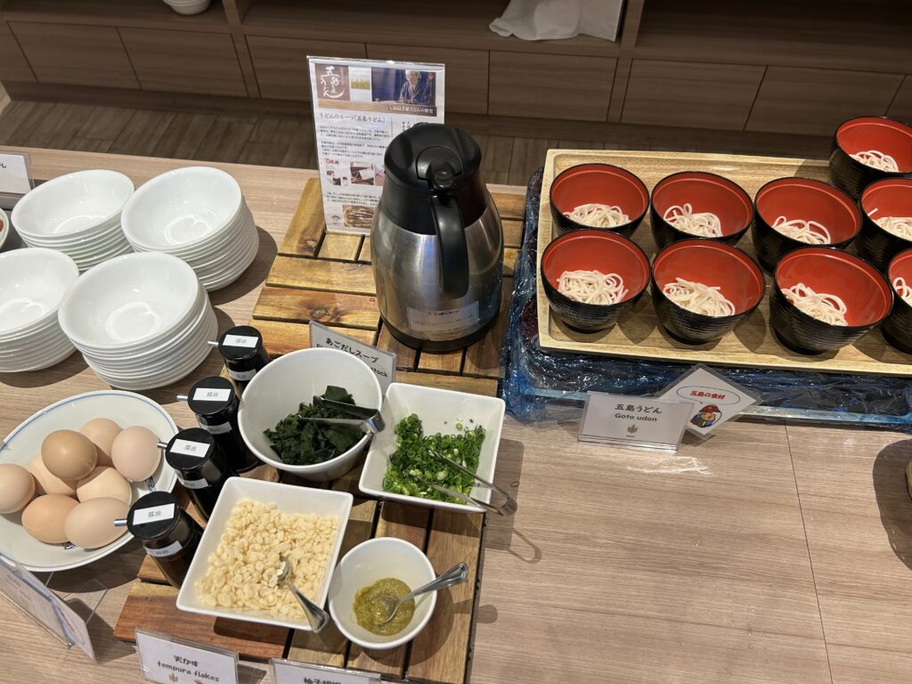 五島うどんのコーナーもあり、島に来た実感を朝からしっかり感じられます。