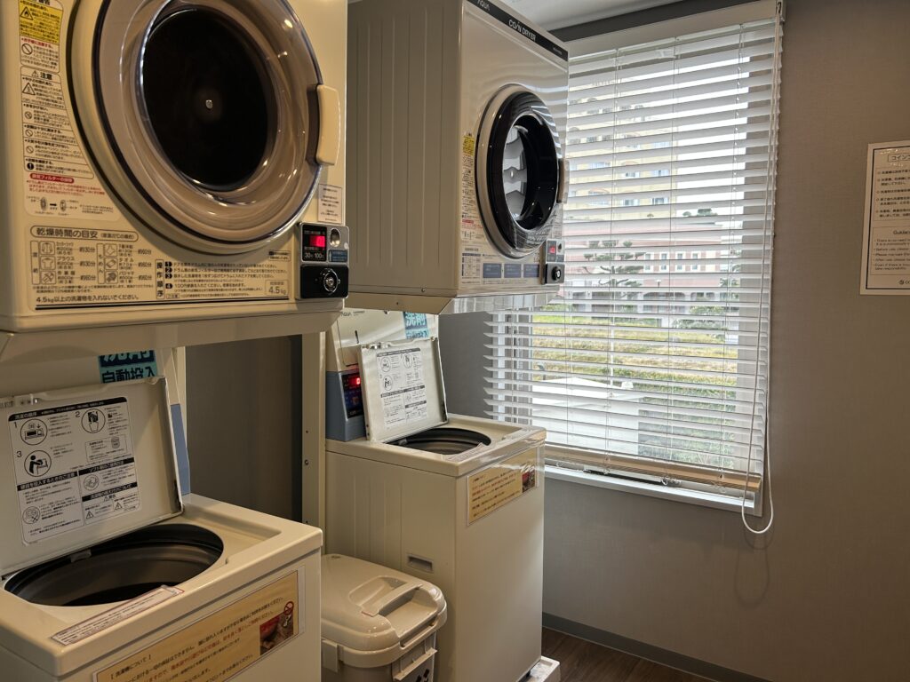 ランドリーコーナーが2Fにあり、洗濯機(300円)と乾燥機(30分100円)が2台ずつ。(料金を入れれば洗剤は自動投入でした)